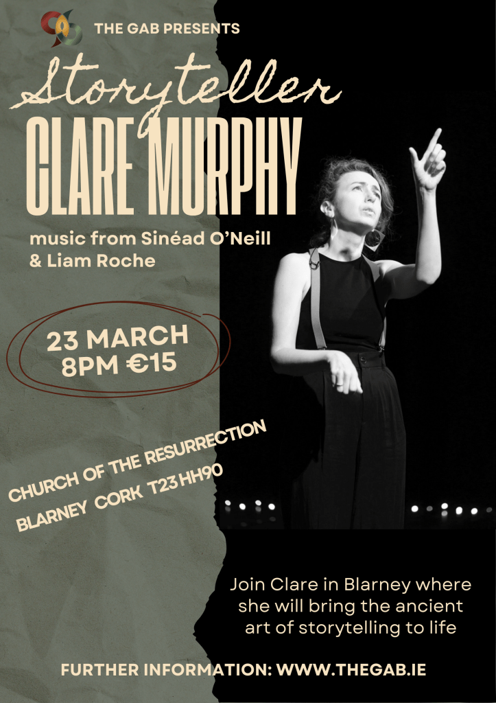 We are very excited to be brining Clare Murphy to Blarney in March 2025 for a workshop and performance. You can register here in advance https://forms.gle/CD9XPRTr54yZCSh7A