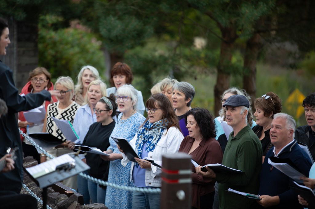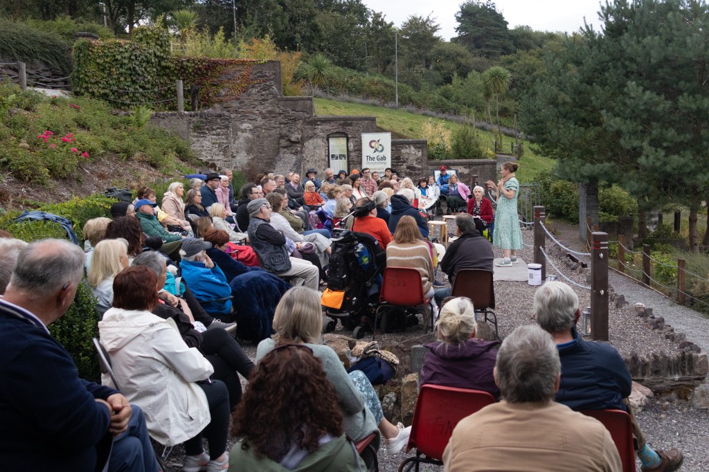 The prayers all week for good weather were granted and we couldn’t have had a finer evening on the site of the old schoolhouse on the church grounds in Waterloo for the Gab Storytelling Summer Special. The collaboration with Blarney Community Choir that started in May paid dividends when the choir joined us for the evening. Under the guidance of Anna Mitchell and accompanied by Robbie Barron on guitar, the choir delighted us with “Under the Moon of Love” by Tommy Boyce and Curtis Lee followed by the timely Oasis classic “Don’t look back in anger” and the uplifting Coldplay’s “When I ruled the world”.